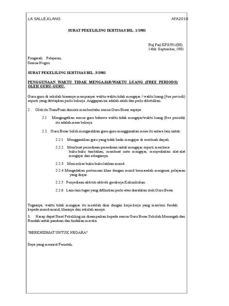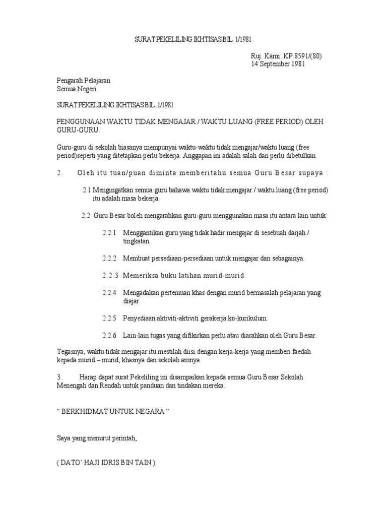Surat Pekeliling Ikhtisas Bil 1 1981 Jaroncxt