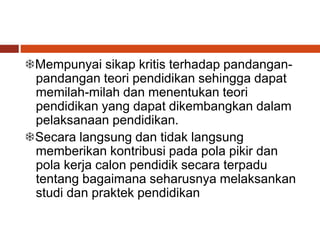 Mampu menyusun program pengajaran yang baik. Tidak ada mahluk lain yang membutuhkan pendidikan. Kajian mengenai Pendidikan Karakter.